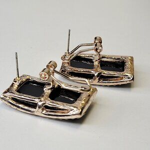 Black Crystal Rectangular Earrings with Leverback Closure