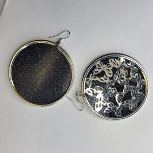 Black and Silver Glitter Butterfly Earrings Round Butterfly Earrings