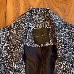 Chic tweed jacket with a monochrome pattern. Ideal for elegant settings.