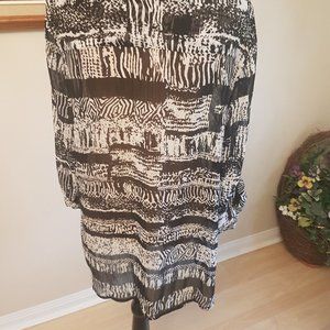 Black and white lightweight women's blouse.
