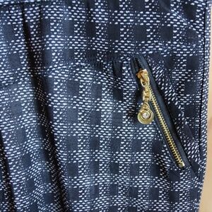 Black and white checked leggings with gold-tone zippers and pockets. 85% polyester / 15% spandex. Never worn as they were too small for me.