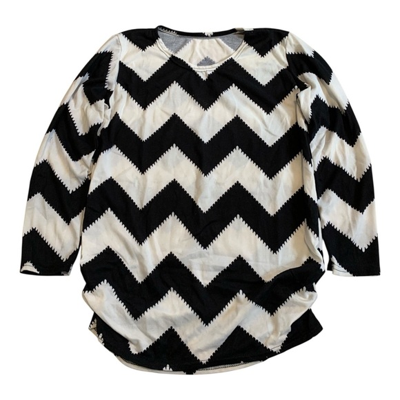 Black and White, Chevron, Zig-Zag, Striped, Blouse, Top, Shirt, Tunic, Long Sleeve, 3/4 Sleeve, Ruched, Gathered, Stretchy, Lightweight, Casual, Dressy, Trendy, Classic, Modern, Scoop Neck, Poshmark, Fashion, Women's, Apparel.