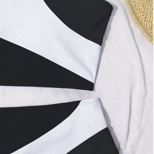 Black and White Color Block Tie Shoulder Bikini Swimsuit Bathing Suit