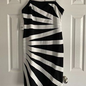 A black and white fitted dress with spaghetti straps. Size 10, never worn with tags!