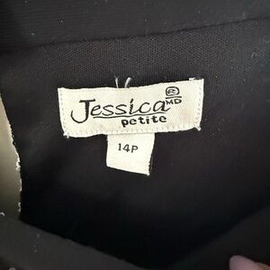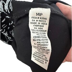 Elegant black dress with white floral patterns. Perfect for any occasion.