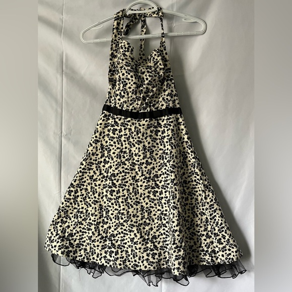 Stylish black and white floral halter dress. Perfect for any occasion.