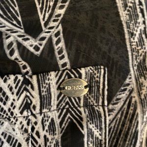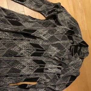 Semi-sheer delicate button-up blouse. Black and white colour, geometric pattern.