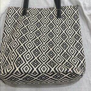 Stylish tote bag with a black and white geometric pattern. Perfect for everyday use. PU leather and in good condition.