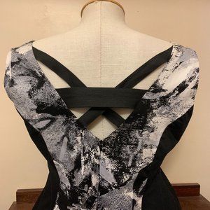 Black and White LeChateau XLarge Cocktail Dress with elastic crisscross detailing at the back.