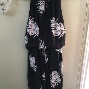 Elegant black dress with white leaf print. Perfect for any occasion.