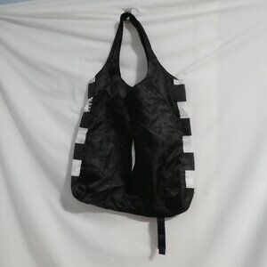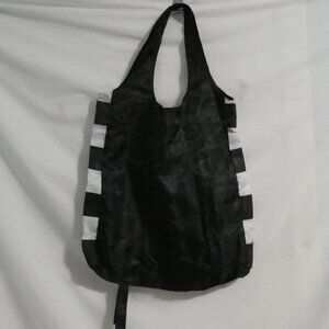 Black and White Lightweight Foldable Packable Handbag With Snap Fastener