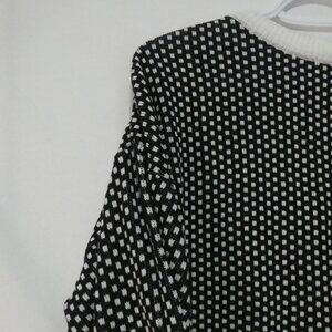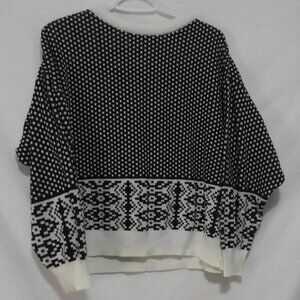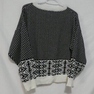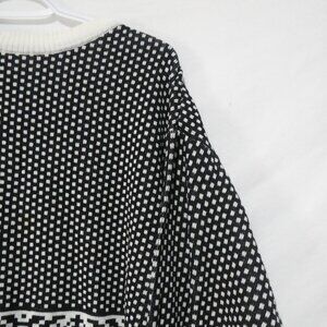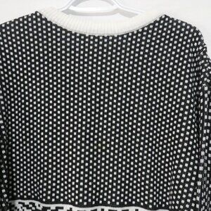 Black and White Patterned Knit Sweater | medium | Ribbed Neck, Bottom & Cuffs