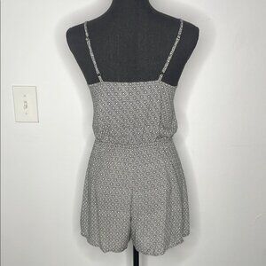 Stylish black and white patterned romper. Perfect for casual outings. Has adjustable shoulder straps, and an elastic waist band.