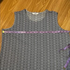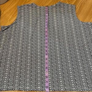 Stylish black and white sleeveless top with a unique pattern. Perfect for casual outings or a day at the office.