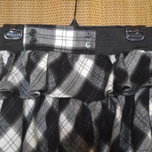 Fun, flowy black and white plaid 3 Layered knit skirt with elastic waistband and decorative button detail. Like new and in great condition!