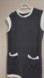 Stylish sleeveless tunic in black and white. Features two front pockets. Perfect for casual wear.