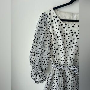 Black and White Sundress with Bishop Sleeves and Square Neck