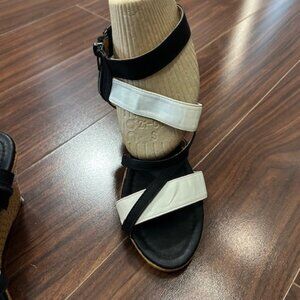 Like new (worn once) - Faux leather white and black wedge shoes with ankle strap- size 7