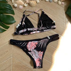 Black and pink floral Rhythm Bikini Top: $20 Bottom: $27