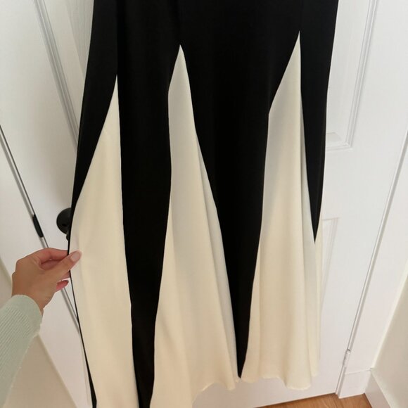 This chic A-line silhouette features bold color-blocked panels that glide with your every move.