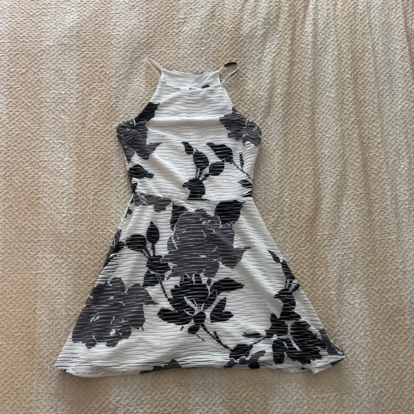 Design Lab black and white floral A-line dress. Dress is stretchy. Made in USA. Size S. I am 5’4 with 25 waist for reference.