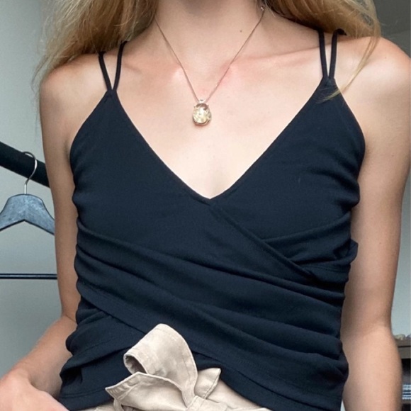 Nice top that can be worn with almost everything. Sturdy fabric and does not shine through. Its slightly cropped. Worn 1/2 time, top does not fit me well