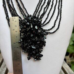 Striking clustered bead necklace. Beads are mostly black, but there are hints of blue and a few other colours. Great condition.