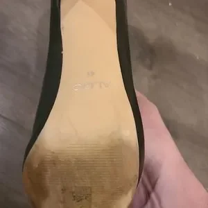Aldo black bootlets w/ peep toe and 3.5 - 4" stiletto heel.