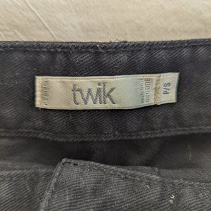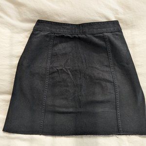 Black mini skirt with real buttons down the front. size small, from Simons. denim type material, mid-high waisted