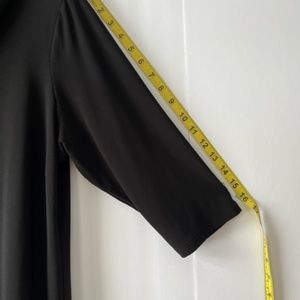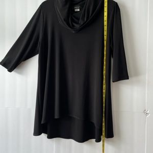 Black top by Pretty Women in XL. Has cowl neck and is longer in back than front please see measurements in picture. 3/4 length sleeves. Material has a nice weight to it 92% Polyester and 8% spandex. Comes from smoke and pet free home.