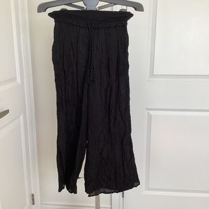 Black, crinkle palazzo pants.