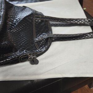 Black crocodile print shoulder bag