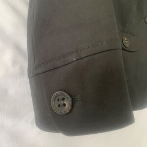 Multi button front with buttoned cuffs and super cute mini back vent!