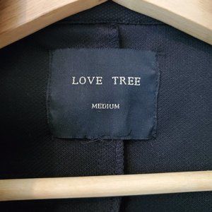 Contemporary black cropped jacket by Love Tree. Features a structured silhouette with asymmetric zip closure, silver-toned snap buttons, and zipper accents. Size medium