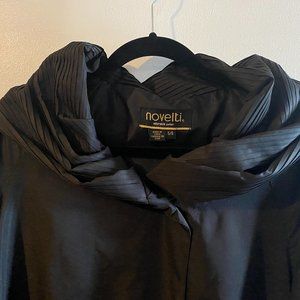 Beautiful straight cut dress coat that buttons up and has front pockets.