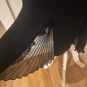Stunning flared skirt with a unique semi-sheer patterned panel at the hem. The flow and movement make it perfect for dressy events or an elegant night out.