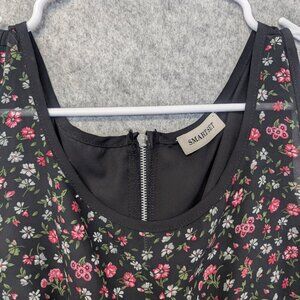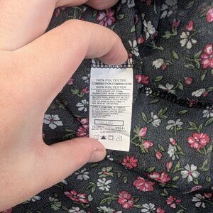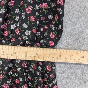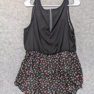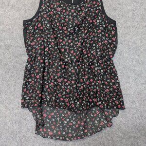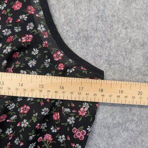 Black floral sleeveless top shirt blouse flowy draped lightweight boho - Large