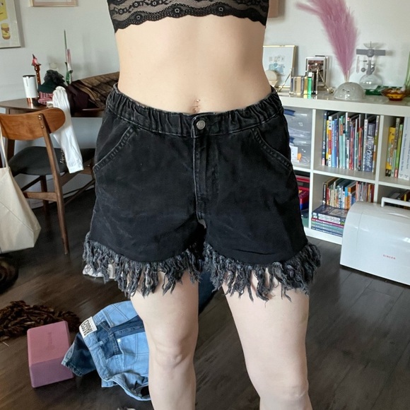 Black frayed cutoff jean shorts - zara - 8