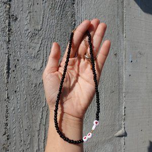 Materials: glass beads , acrylic heart beads, 18k gold plated on stainless steel findings (sweatproof & waterproof ) , last long , it will never turn your skin green .