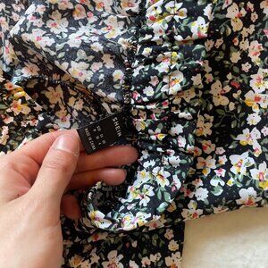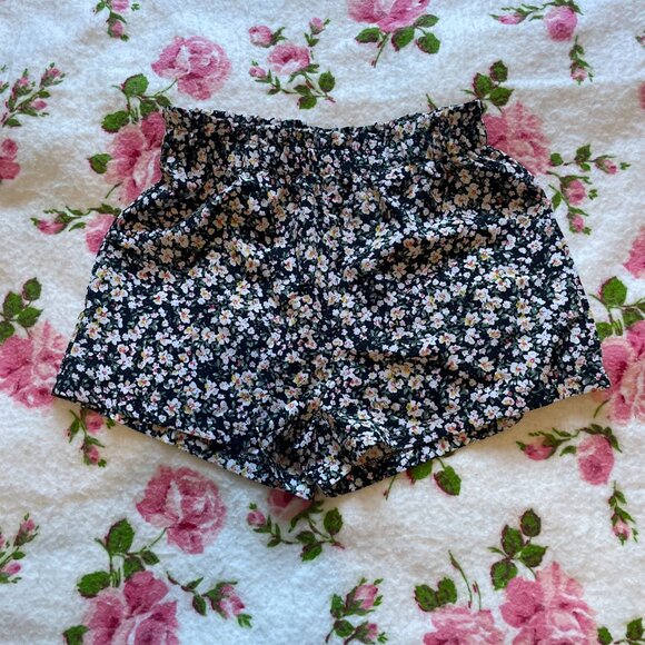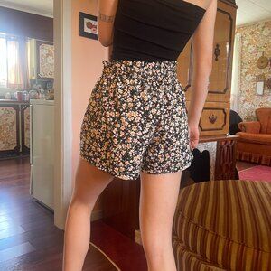 Tags: black high waisted floral shorts, vintage style 80s shorts, 80s style shorts, baggy shorts, fit and flare shorts, paperbag waist shorts, floral print shorts, flower print shorts, black shorts, high waisted black floral shorts,