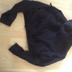 Black hoodie jacket, size tag states large but it is really more like a small adult-sized hoodie