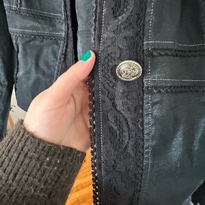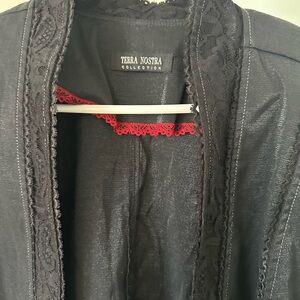 Terra Nostra black blazer jacket size 14 in shimmering black. Has beautiful lace detailing. Vampire style.