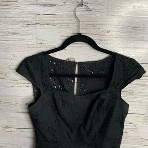 Black label Saks fifth ave eyelet black midi dress size 4 black