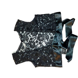 Black lace bolero with satin tie