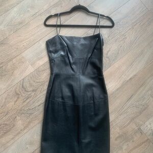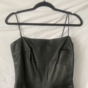 NEVER WORN Tahari black leather spaghetti strap dress!