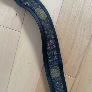 Black leather bag with flowers on the strap, like brand-new