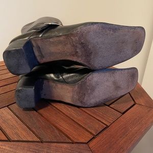 Stylish black leather boots with silver buckle detail. Size 36 European. One and a half inch heel. Fits size 6 -6 1/2 North American.