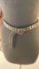 Black leather chain belt 34.5 inches long metal round buckle approximately 1 inch in diameter no notches required