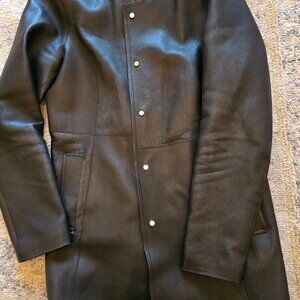 Black leather silver button detail jacket. Great condition, but there is wear at the collar, please review the pictures.
