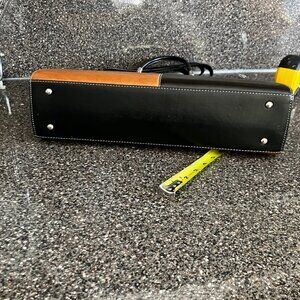 Black leather hand purse with shoulder strap, tri colour mix face, not new but never used. fell in love in the Phoenix airport but never found the right outfit